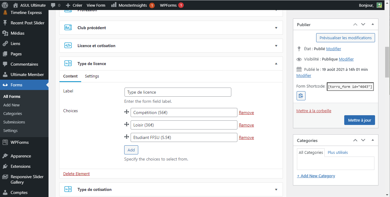 Le plugin utilisé est Torro Forms (pour plus d’infos : site officiel).
